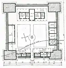 En el centro llevaba el aljibe, la iglesia dando espalda al río (Norte del fortín). Por los costados de la iglesia, la armería y la habitación del cura y del comandante. Vista del frente a la iglesia, al lado derecho, se encontraban las habitaciones de los soldados; al lado izquierdo de la iglesia, el cuartel; y en frente, la entrada, la guardia y el calabozo.