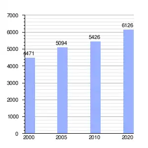 Gráfica de evolución demográfica de Villa de Arriaga entre 2000 y 2020 |