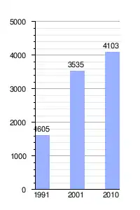 El incremento poblacional fue del 114,99% con relación al anterior Censo Provincial, realizado en 1996, cuando tenía 1.855 pobladores, lo que equivale a una tasa del 9,58% anual.