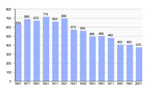 Gráfica de evolución demográfica de Villa del Bosco entre 1861 y 2001 |