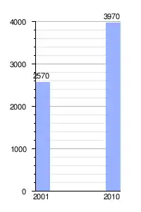 Gráfica de evolución demográfica de Villa del Carmen entre 2001 y 2010 |