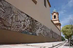 Con el consentimiento del entonces párroco Julio Peralta se realiza el mural que alegoriza el derrumbe de la cúpula durante los trabajos de construcción de la basílica donde murieron 4 obreros y el arquitecto Pellerin, autor del proyecto de esta iglesia. El mural se ejecuta bajo la dirección de Jose Kura y la arquitecta Almeida con la participación de los artistas plásticos locales asistentes al taller.