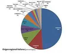 La fuerte presencia de descendientes de piamonteses en la región se concreta en números en un estudio demográfico realizado por Rodrigo Mariani y presentado en la Summer Accademy 2010 sobre Emigración Italiana en Torino (Italia) en julio de ese año.