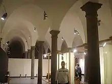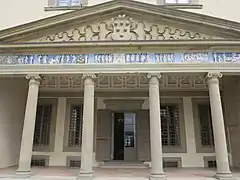 La sala de entrada está enfoscada en un color amarillo claro y contiene algunas inscripciones sobre Vittorio Emanuele II y sobre el plebiscito que unió la Toscana al entonces naciente Reino de Italia.
