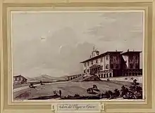 A Giuliano da Sangallo también se atribuye otro edificio dentro de la gran propiedad; se trata de una edificación cuadrada y bastionada, con un patio central, llamada “Cascine”, que se encuentra al otro lado del Ombrone y que, como centro de la actividad agrícola, construida antes de la misma villa, era su contrapunto ideal en el diseño general.