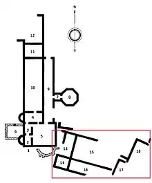 En cuanto a las habitaciones restantes (las habitaciones 10, 11 y 12), los excavadores creen que estaban unidas al grupos de habitaciones, pero no fueron muy estudiadas.