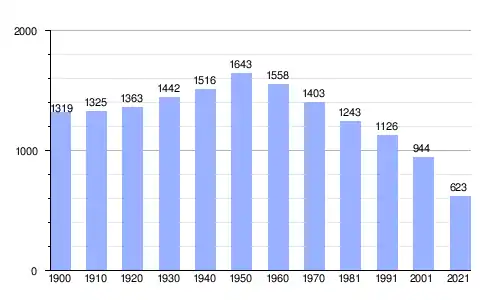 Gráfica de evolución demográfica de Villabuena del Puente entre 1900 y 2021 |
