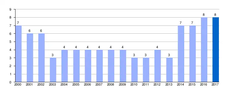 Gráfica de evolución demográfica de Villaescusa de Tobalina entre 2000 y 2017 |