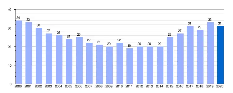 Gráfica de evolución demográfica de Villafría de la Peña entre 2000 y 2020 |