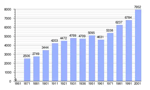 Gráfica de evolución demográfica de Villafranca Padovana entre 1861 y 2001 |