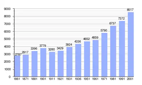 Gráfica de evolución demográfica de Villafranca Tirrena entre 1861 y 2001 |