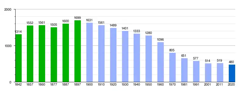 Población de derecho (1842-1897, excepto 1857 y 1860 que es población de hecho) según los censos de población del siglo XIX. Población de derecho (1900-1991) o población residente (2001-2011) según los censos de población del INE. Población según el padrón municipal de 2020 del INE. |