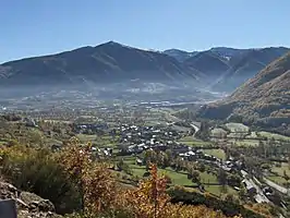 Enclavado en un valle de la cordillera Cantábrica, el pueblo está rodeado de cumbres de más de 2000 msnm, como: Muxiven 2032 m, Cuetonidio 1779 m, El Miro 1850 m, Cueto de Arbas 2002 m, y El Cornón 2194 m.