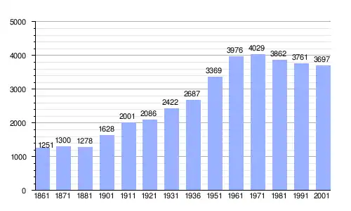 Gráfica de evolución demográfica de Villagrande Strisaili entre 1861 y 2001 |