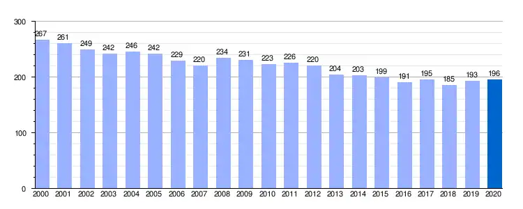 876 | 758 | 667 | 651 | 616 | 652 | 530 | 434 | 378 | 339 | 239 | 214 |