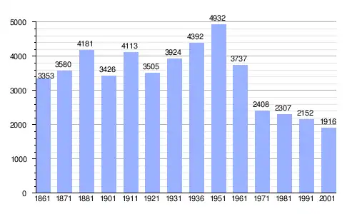 Gráfica de evolución demográfica de Villalba entre 1861 y 2001 |