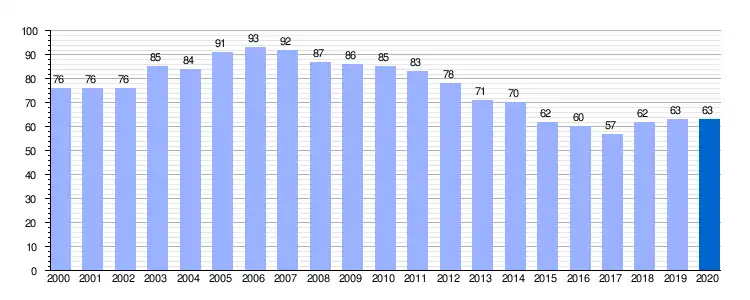 Gráfica de evolución demográfica de Villalba de Losa entre 2000 y 2020
