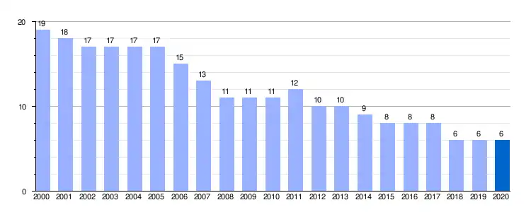 Gráfica de evolución demográfica de Villalbeto de la Peña entre 2000 y 2020 |