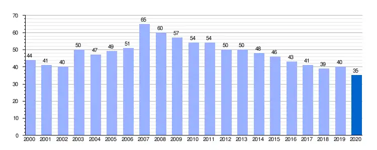Gráfica de evolución demográfica de Villaldavín entre 2000 y 2020 |