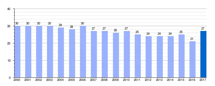 Gráfica de evolución demográfica de Villalebrín entre 2000 y 2017 |