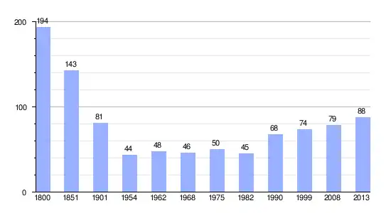 Los datos demográficos contemplados en este gráfico de la comuna de Villalet[4] se han cogido de 1800 a 1999 de la página francesa EHESS/Cassini, y los demás datos de la página del INSEE.[5]