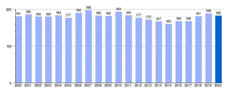 - Evolución de la población de la localidad de Villaluenga de la Vega en el siglo XXI[1]