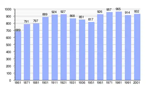 Gráfica de evolución demográfica de Villalvernia entre 1861 y 2001 |