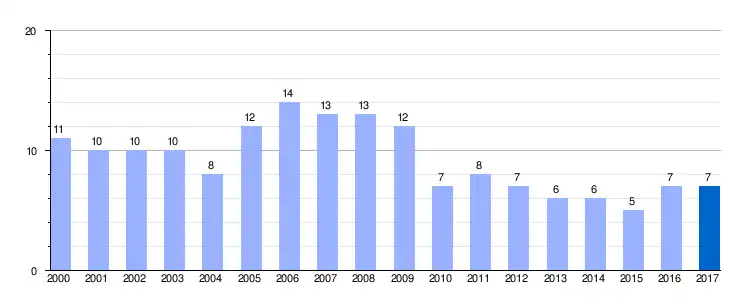 Gráfica de evolución demográfica de Villamórico entre 2000 y 2017 |