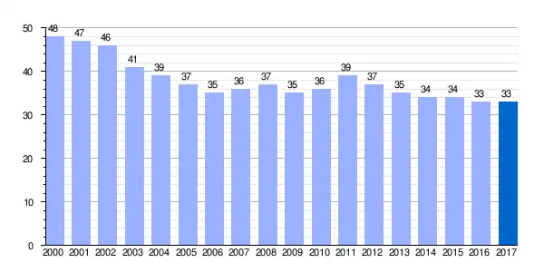 Gráfica de evolución demográfica de Villamaderne-Bellojín[1] entre 2000 y 2017 |