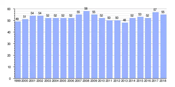 Gráfica de evolución demográfica de Villamarín entre 1999 y 2018 |