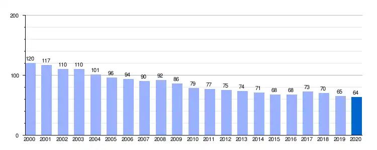 Gráfica de evolución demográfica de Villambroz entre 2000 y 2020 |