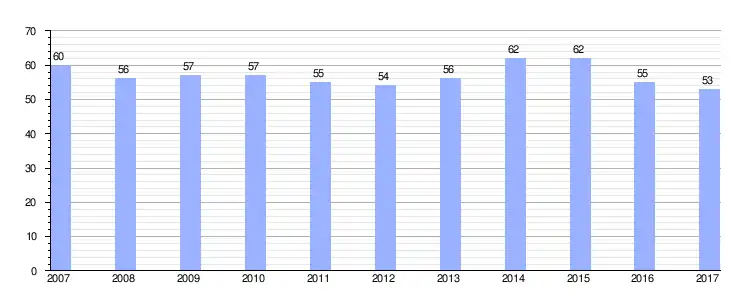 Gráfica de evolución demográfica de Villamediana de la Vega entre 2007 y 2017 |
