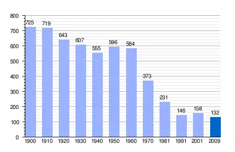 Población de derecho (1900-1991) o población residente (2001) según los censos de población del INE. Población según el padrón municipal de 2009 del INE. |