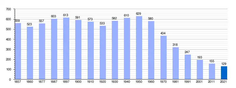 Gráfica de evolución demográfica de Villamoratiel de las Matas[4] entre 1857 y 2021 |