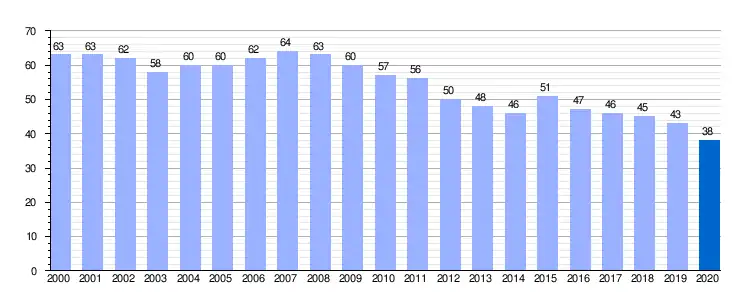 Gráfica de evolución demográfica de Villamuera de la Cueza entre 2000 y 2020 |