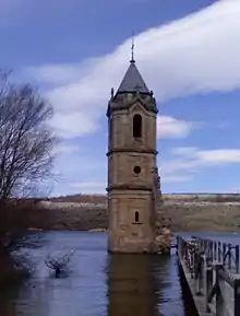 Antigua iglesia de Villanueva sumergida en el pantano.