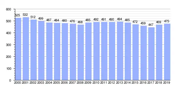 Gráfica de evolución demográfica de Villanueva[4] entre 2000 y 2019