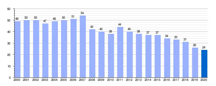 Gráfica de evolución demográfica de Villanueva de Henares entre 2000 y 2020 |