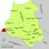 Son localidades limítrofes Fuente la Reina y Caudiel, ambas de la provincia de Castellón y San Agustín de la provincia de Teruel.