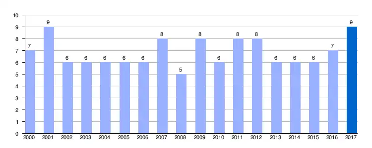 Gráfica de evolución demográfica de Villanueva de la Oca entre 2000 y 2017 |