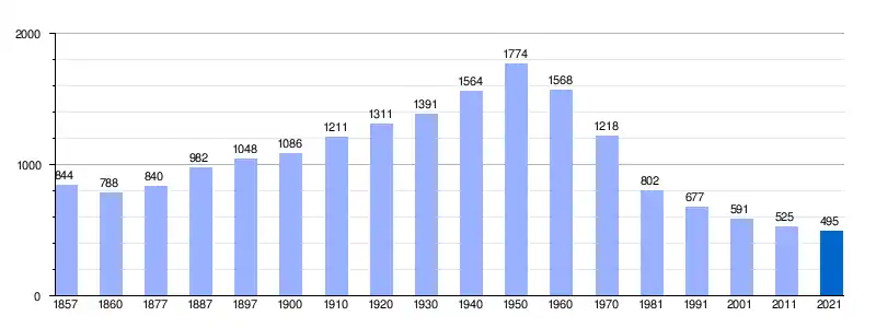 Gráfica de evolución demográfica de Villanueva de las Manzanas[4] entre 1857 y 2021 |