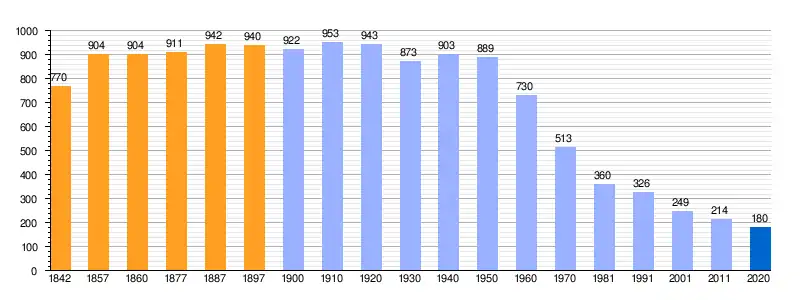 Población de derecho (1842-1897, excepto 1857 y 1860 que es población de hecho) según los censos de población del siglo XIX. Población de derecho (1900-1991) o población residente (2001-2011) según los censos de población del INE. Población según el padrón municipal de 2020 del INE. |