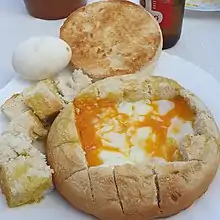 La Tostada con Huevo es un exquisito y desconocido manjar muy fácil de elaborar y netamente ariscaleño. Se realiza con pan de "boba" hecho calas y tostado. Se frota la parte dorada con un ajo y se rocía generosamente con buen aceite de oliva y un punto de sal. Una vez realizada esta operación, se extraen las calas centrales de la "tostá" y se incorpora en este hueco un huevo pasado por agua. Se moja con las calas extraídas y se acompaña de lo que quiera. Unas cebolletas frescas del terreno y unas aceitunas moradas aliñadas pueden ser compañeras ideales de este plato.