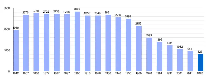 En 2017 contaba con 874 habitantes censados, mientras que en 1845 —según el Diccionario Madoz— contó con 490 vecinos y 1960 almas.