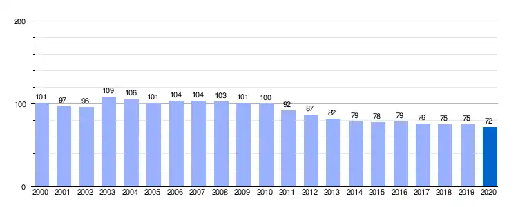 253 | 224 | 209 | 229 | 216 | 217 | 217 | 152 | 96 | 83 |