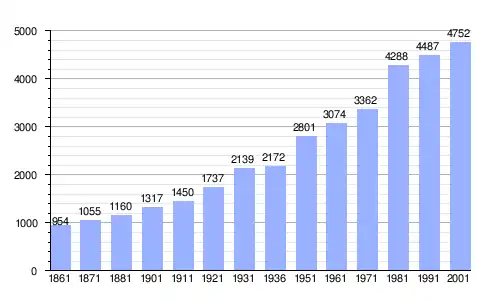 Gráfica de evolución demográfica de Villapiana entre 1861 y 2001 |