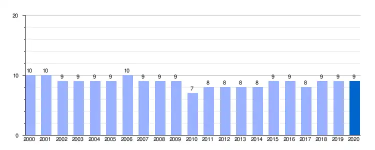 Gráfica de evolución demográfica de Villarín de Riello entre 2000 y 2020 |