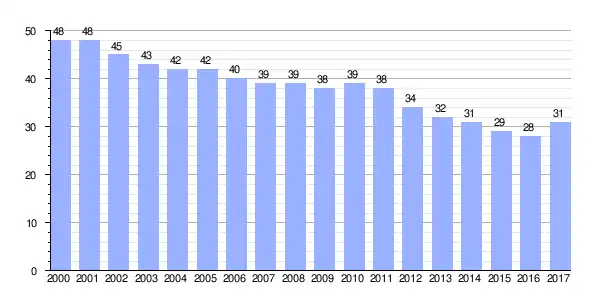 Gráfica de evolución demográfica de Villar de Golfer[2] entre 2000 y 2017 |