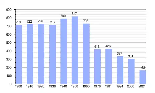 Gráfica de evolución demográfica de Villar de la Yegua entre 1900 y 2021 |