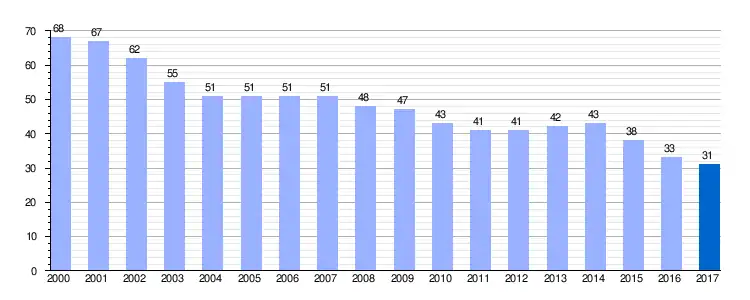 Gráfica de evolución demográfica de Villar del Águila entre 2000 y 2017 |